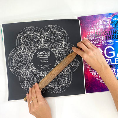 2) Carefully slide the Circzle onto the saver board till the first fold line, as indicated.